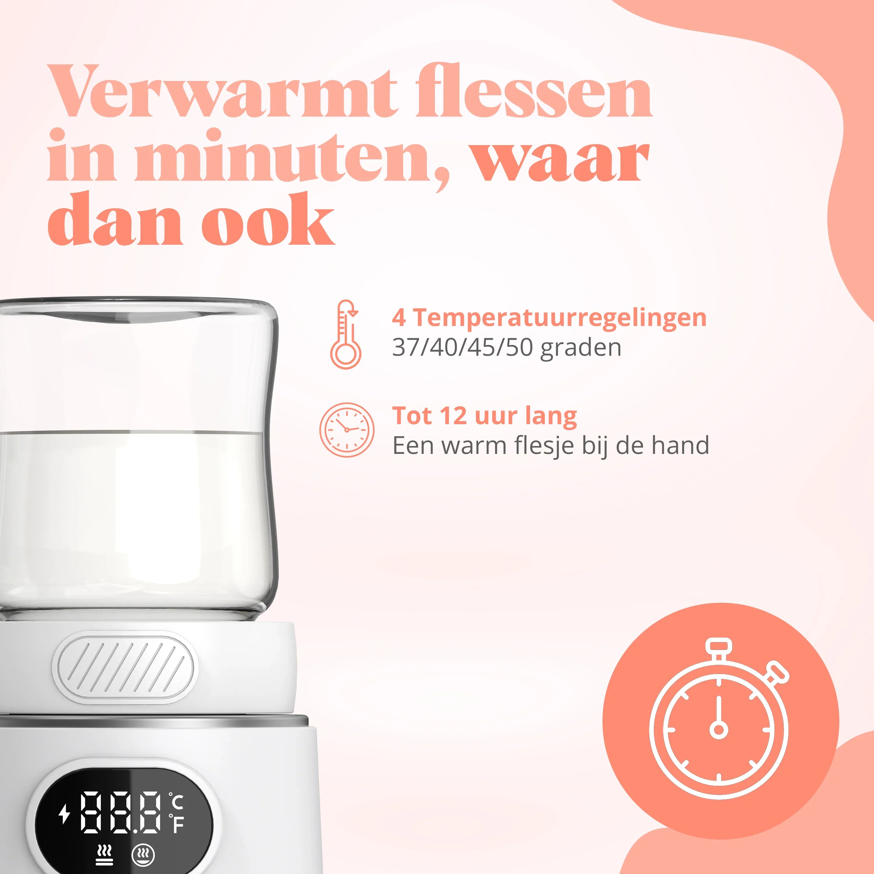 As a parent on the go, you want to quickly and safely warm a bottle without hassle. The Evite Portable Bottle Warmer offers the perfect solution: a powerful, compact, and user-friendly bottle warmer that you always have at hand.
