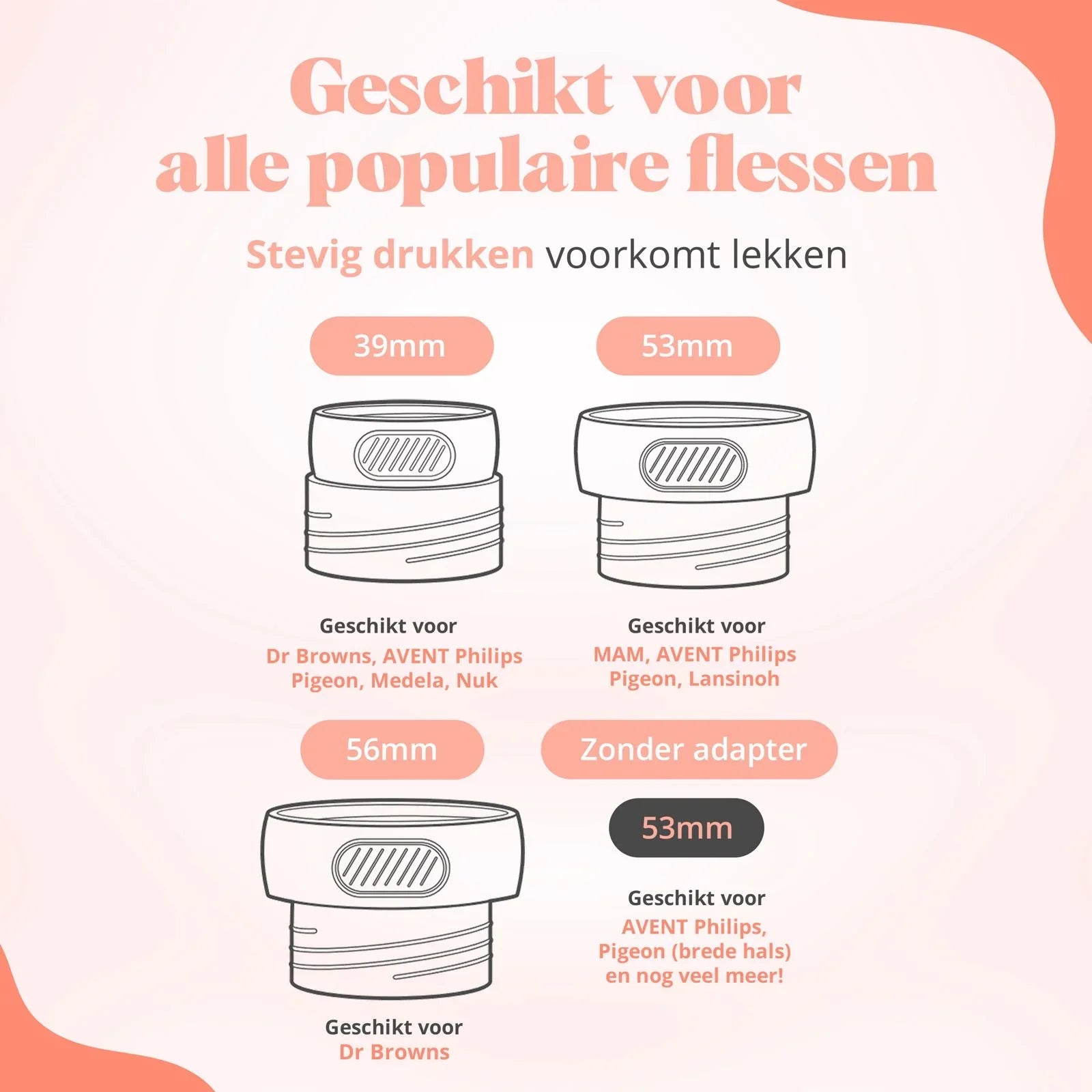 Adapters: Suitable for most bottles thanks to 3 included adapters (39 mm, 53 mm, 56 mm)
