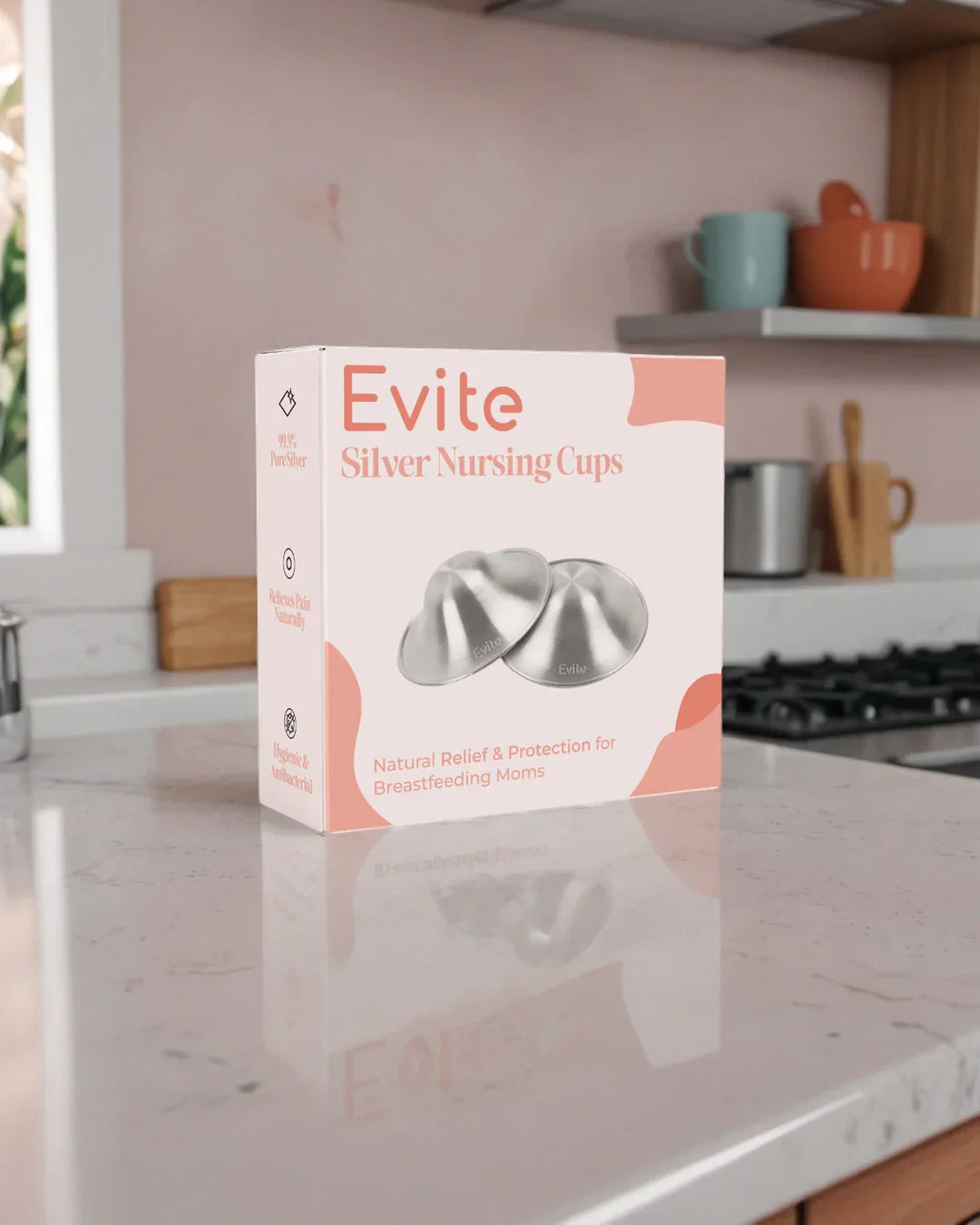 The Evite Silver Nursing Cups are made of 999 silver and provide immediate relief for painful, sensitive, or cracked nipples. They promote healing naturally, without creams or ointments. Comfortable to wear, easy to clean, and stylishly packaged. A must-have for every pumping or breastfeeding mother.