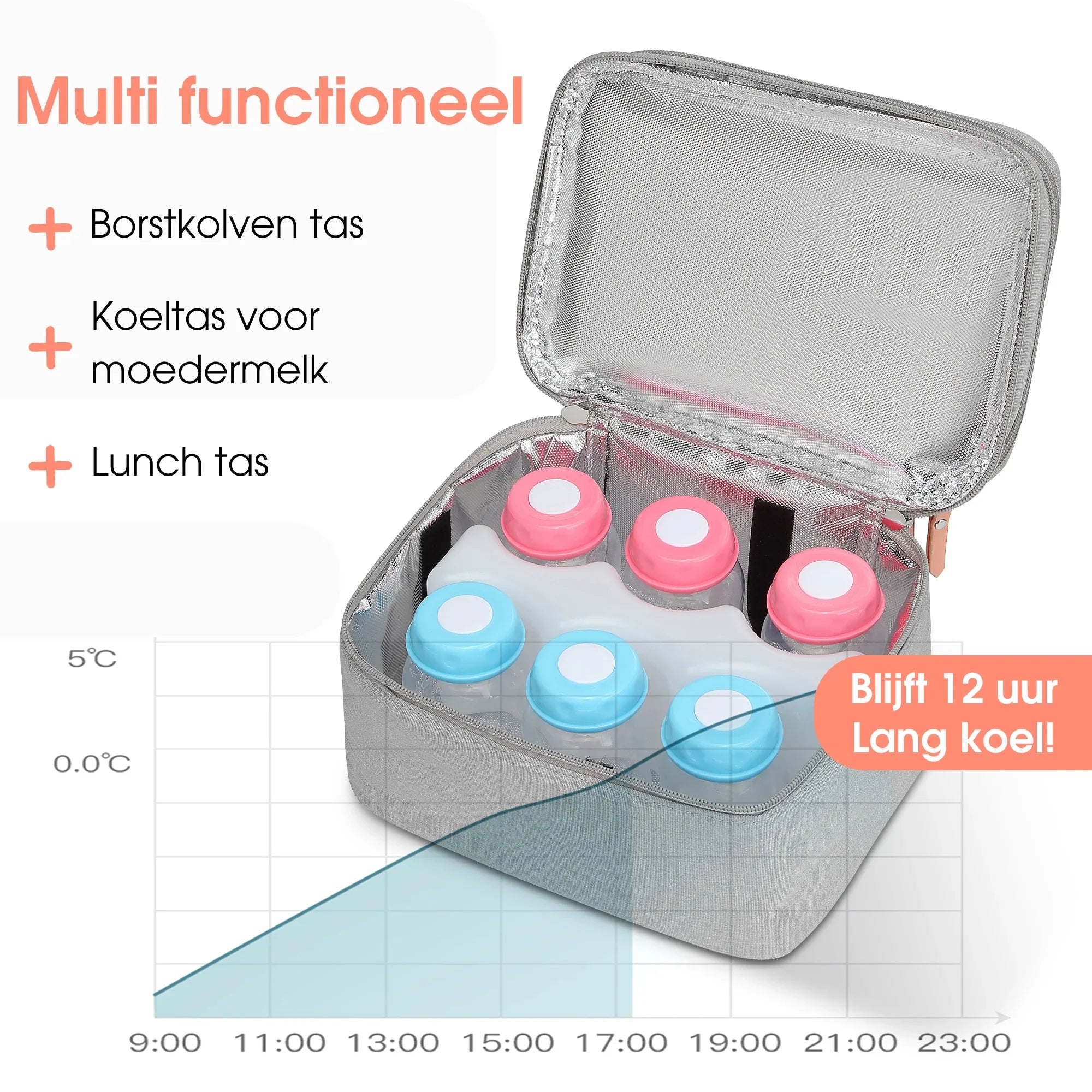 Whether you are on the go, at work, or enjoying a moment for yourself, this cooler bag ensures that your milk always stays at the right temperature. No hassle, no worries.