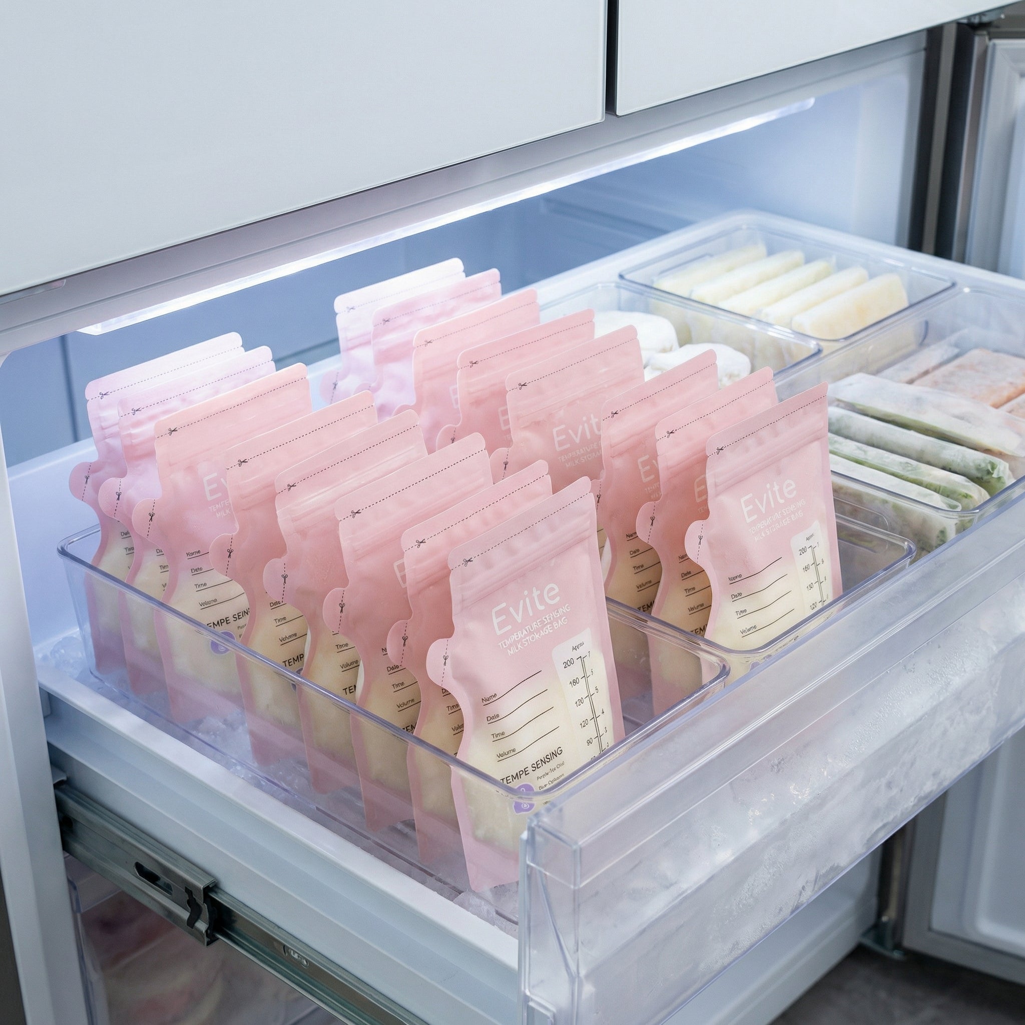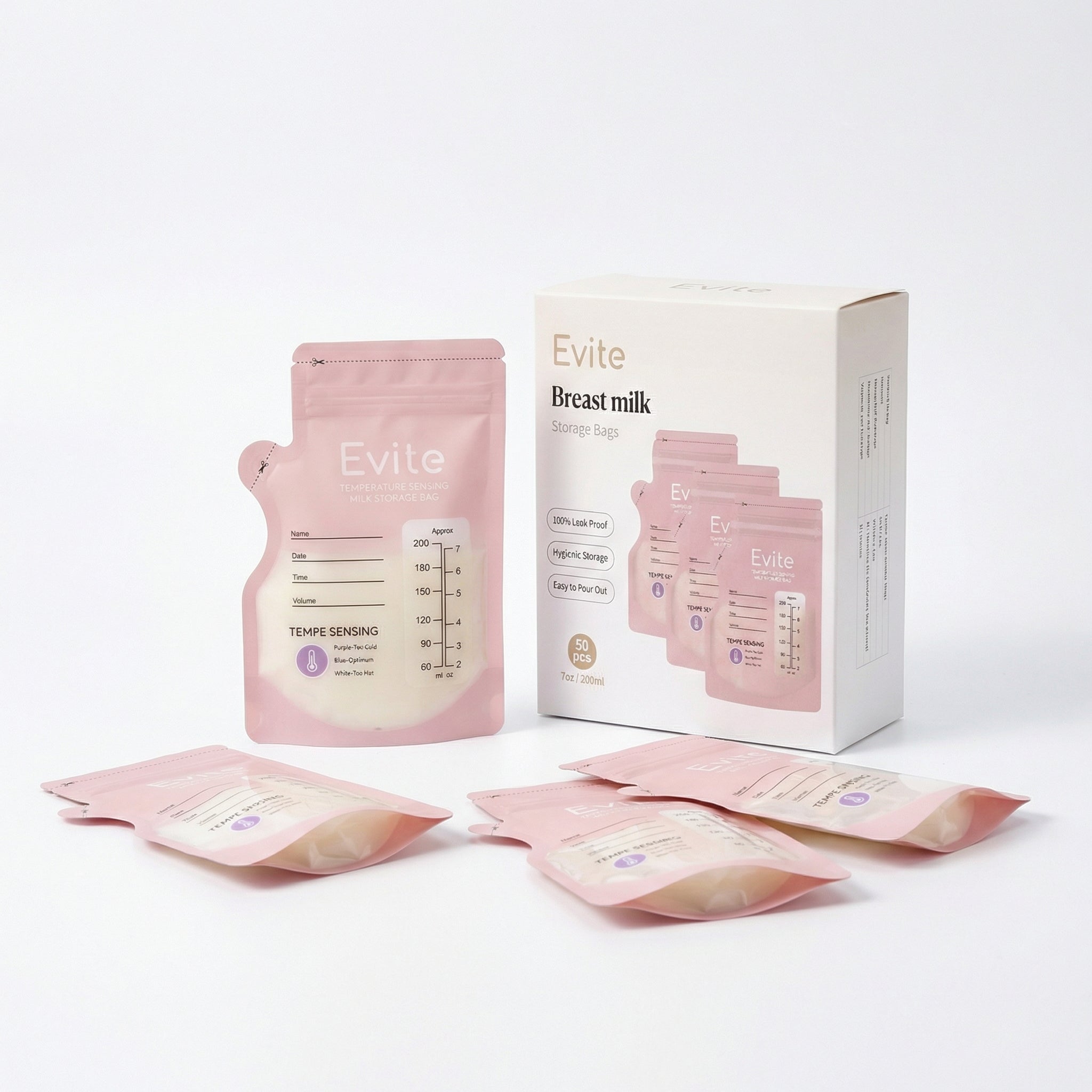 Evite Opbevaringsposer gør det nemt, hygiejnisk og pladsbesparende at opbevare modermælk og babymad. Designet til mødre, der vægter både sikkerhed og brugervenlighed højt.